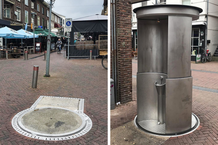 Nyilvános mosdó, ami a földből emelkedik ki