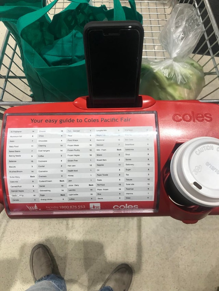 Pohár- és telefontartó, valamint egy lista a legátlagosabb termékekről