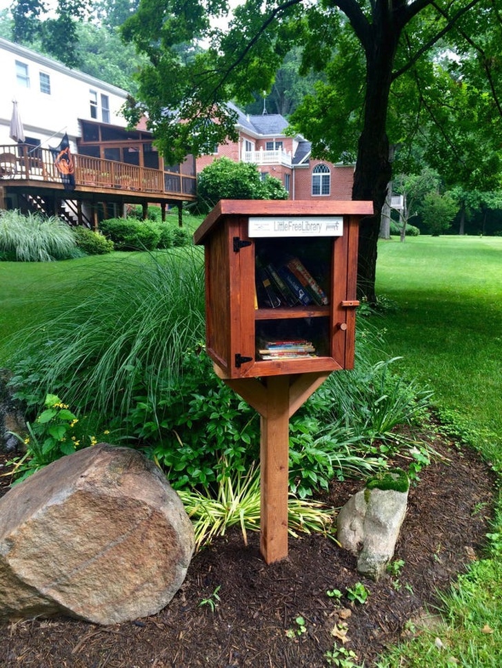 Miniatűr nyilvános könyvtár a park mentén