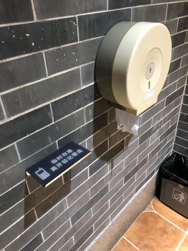 Telefontartó egy WC-ben, Kína