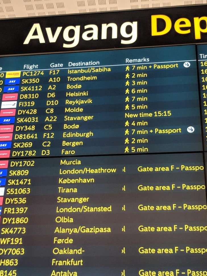 A reptéri tábla, mely mutatja, hogy kb. mennyi idő alatt érsz oda a kapuhoz
