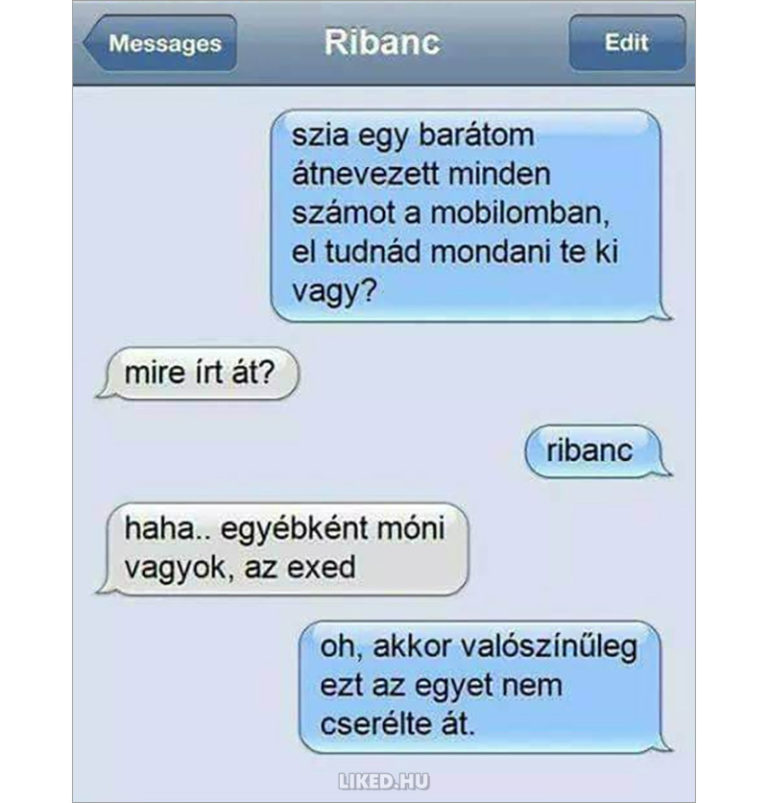 Tudjuk, hogy az élet olyan váratlan helyzeteket tud kreálni, hogy néha nem is számítunk rá. Ez a jelenség pedig természetesen az üzenetben történő csevegésre is óhatatlanul átterjedt, bár igaz, ott legalább nem mindenki szeme láttára okoznak nekünk kellemetlen meglepetéseket, de a kíméletlen „csattanók” azért így sem maradnak el. Reméljük tetszeni fog.