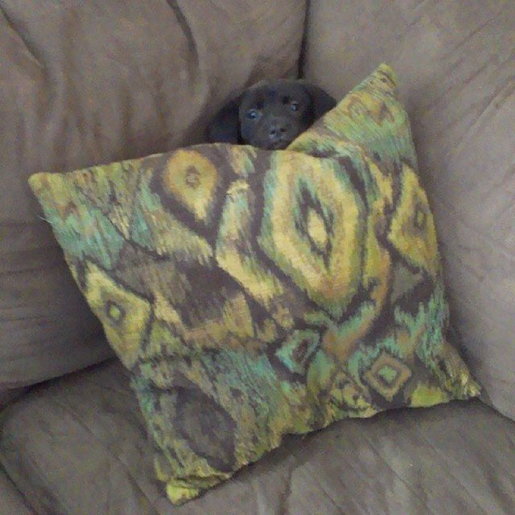 A labrador kiskutyám először találkozott a porszívóval