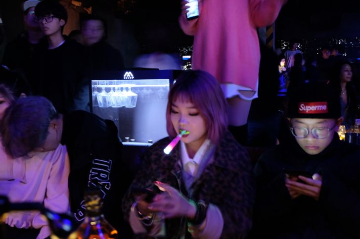 A kínai szórakozóhelyeken a fiúk és lányok zseblámpát tartanak a szájukban, hogy magukra vonják a figyelmet.