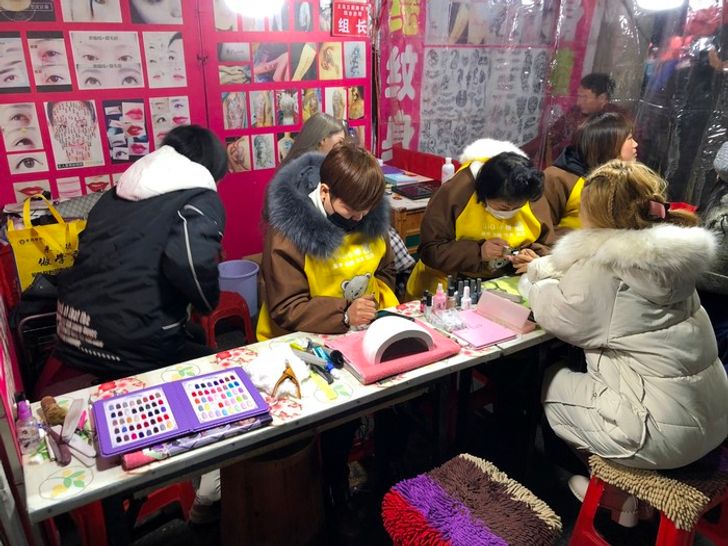 A tetoválásokat és manikűröket sokszor az utca kellős közepén készítik a művészek.
