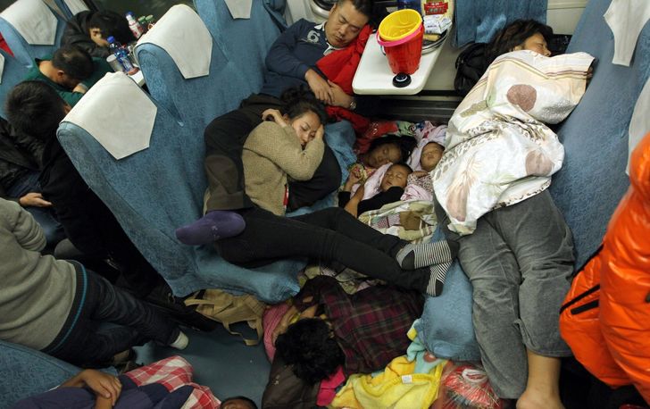 Nem lehet hely jegyet venni még a 2 napig tartó vasúti utazásokra sem. Az utasok gyakran a földön ülnek és fekszenek, vagy ott, ahol épp egy kis hely jut nekik.