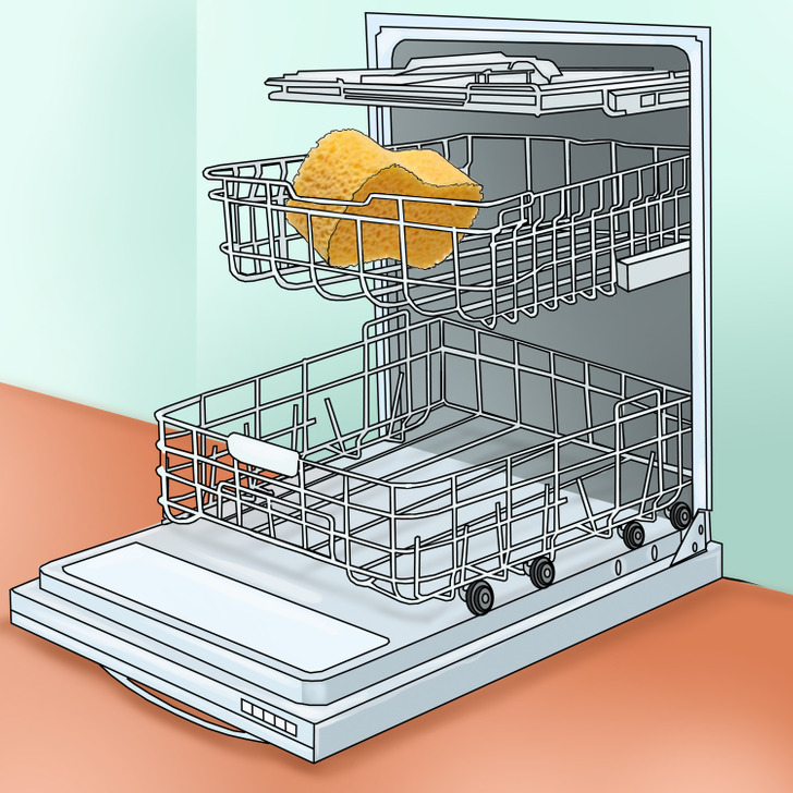 A hagyományos mosogatószivacsok könnyen tisztíthatók a mosogatógépben a többi piszkos edénnyel együtt. A felső állványra helyezheted a fogasok közá állítva, így nem fog mozogni a mosogatás során. Bármilyen súrolókefét is beledobhatsz, feltéve, hogy nincs fa nyele.
