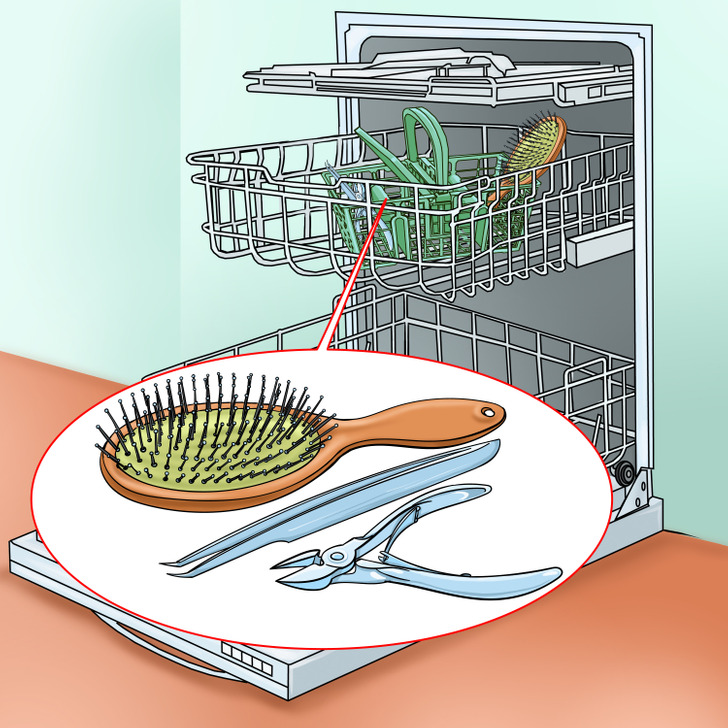 A személyes ápoláshoz használt tárgyak sokkal koszosabbak lesznek, mint gondolnád, mert az elhalt bőr megtapad rajtuk. Ahelyett, hogy kézzel súrolnád azokat, a szokásos piszkos edényekkel együtt berakhatod őket a mosogatógépbe. Ügyelj arra, hogy az evőeszközös rekeszbe tedd, és a mosási ciklus végeztével olyanok lesznek, mint új korukban.