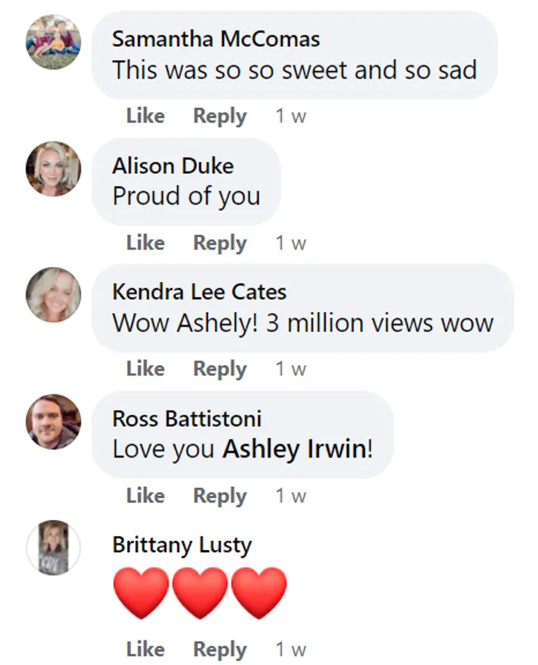 Egy ilyen gyengéd és melegszívű fiúval, a gondoskodó online támogatással, amit kap, és a szeretettel, amit a szívében hordoz, Irwin kétségtelenül olyan életet fog folytatni, ami néhai férjét is mosolyra fakasztaná örömében.