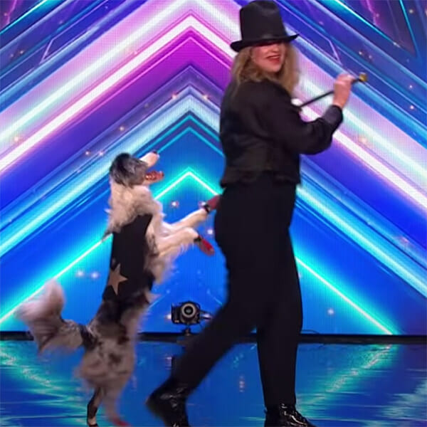 A levegőbe ugrott, megfordult, két lábon táncolt, és felrepült Amber hátára. A végén a közönség csak a szemét dörzsölte, de még a zsűri is!