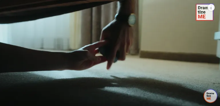 Kétségbeesetten Michael benyúlt az ágy alá, ahová a telefon esett, amikor Lucyval korábban elfoglalták magukat. Szerencsére Lucy átnyújtotta neki a telefont az ágy alól.