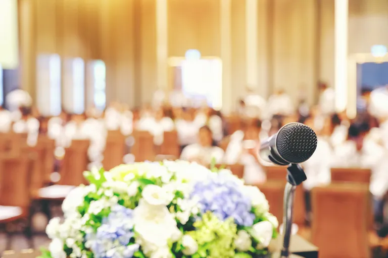 A rokonok nevetnek a vőlegény gondnok anyukáján, amíg színpadra nem lép, hogy gratuláljon az ifjú párnak