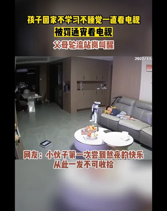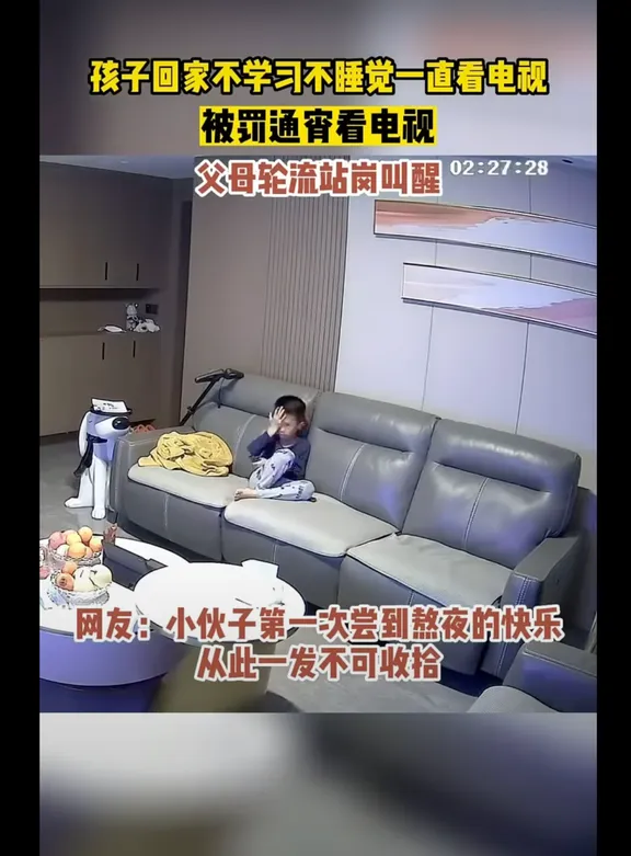 A szülők büntetésből egész éjszakai tévézésre kényszeríti a kisfiukat, megtagadva tőle az alvást