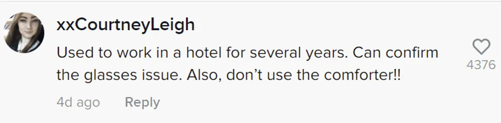 Néhány kommentelő megerősítette a posztoló állításait, mondván, hogy ők is szállodákban dolgoztak. Egy nő szerint: „Mikor házvezetőnőként dolgoztam, az első számú dolog, amit mondtak nekem, hogy nem számít, mennyire tiszta. Csak tisztának tűnjön”.