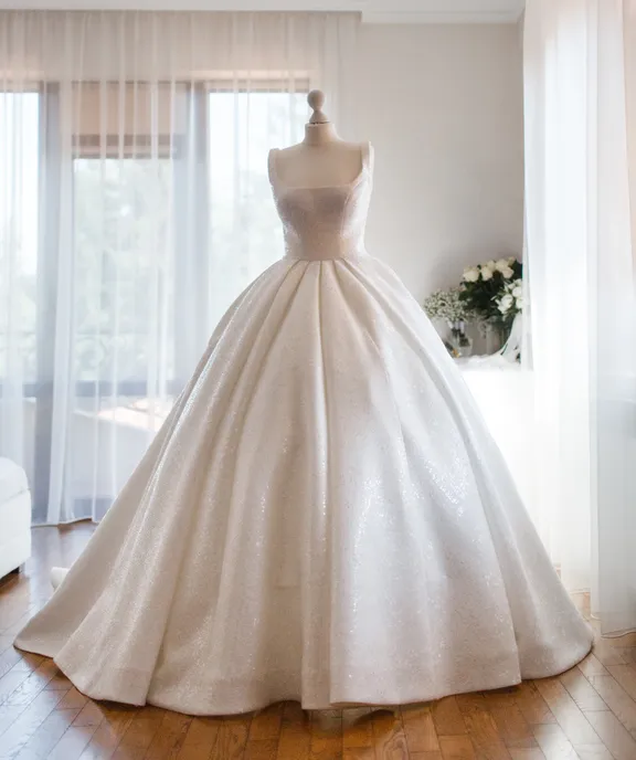 Körbenézett, a tekintete megakadt a próbababán elegánsan kiállított menyasszonyi ruhán. „Ez az a ruha?” – kérdezte, és a hangjában őszinte kíváncsiság lágyult.