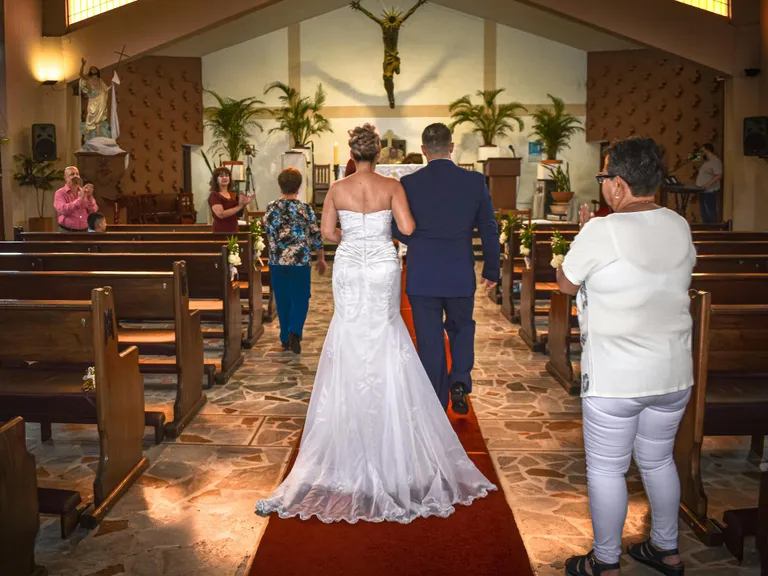 Egy meghitt szertartás keretében kötöttük össze az életünket, közeli barátaink és családtagjaink körében. Lily volt a viráglányunk, és olyan aranyosan nézett ki, ahogy végigsétált az oltár előtt.