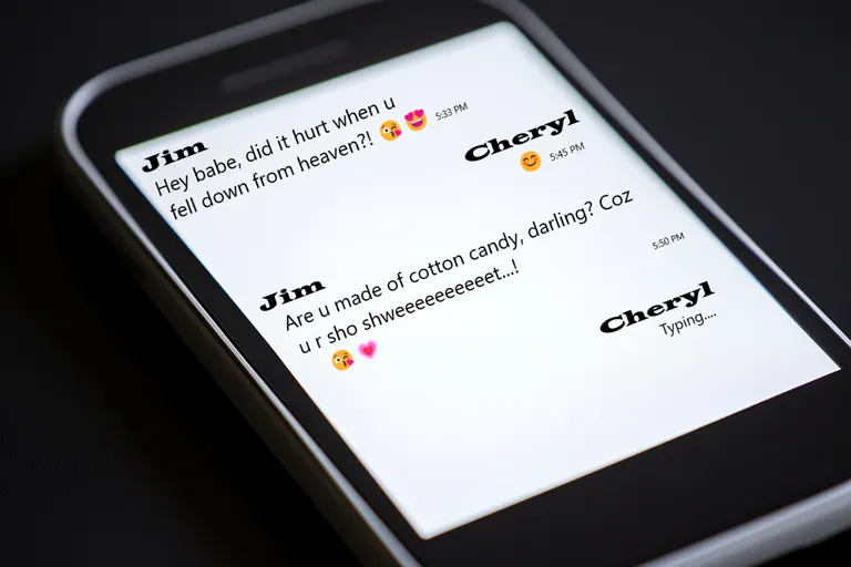 „Ó, Istenem” – nyögte a lány, miközben elolvasta a férfi legutóbbi üzenetét. „Csak azt kérdezte, hogy fájt-e, amikor leestem a mennyből. Ez a szöveg tényleg működik?”