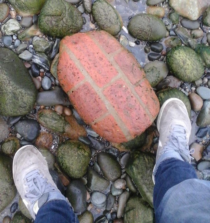 Találtam egy darab téglafalat, a vízmosás lekerekített.