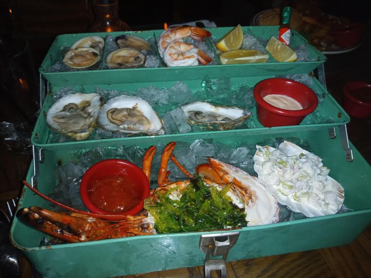 „Tengeri specialitást szolgáltak fel egy vintage szerelődobozban.”