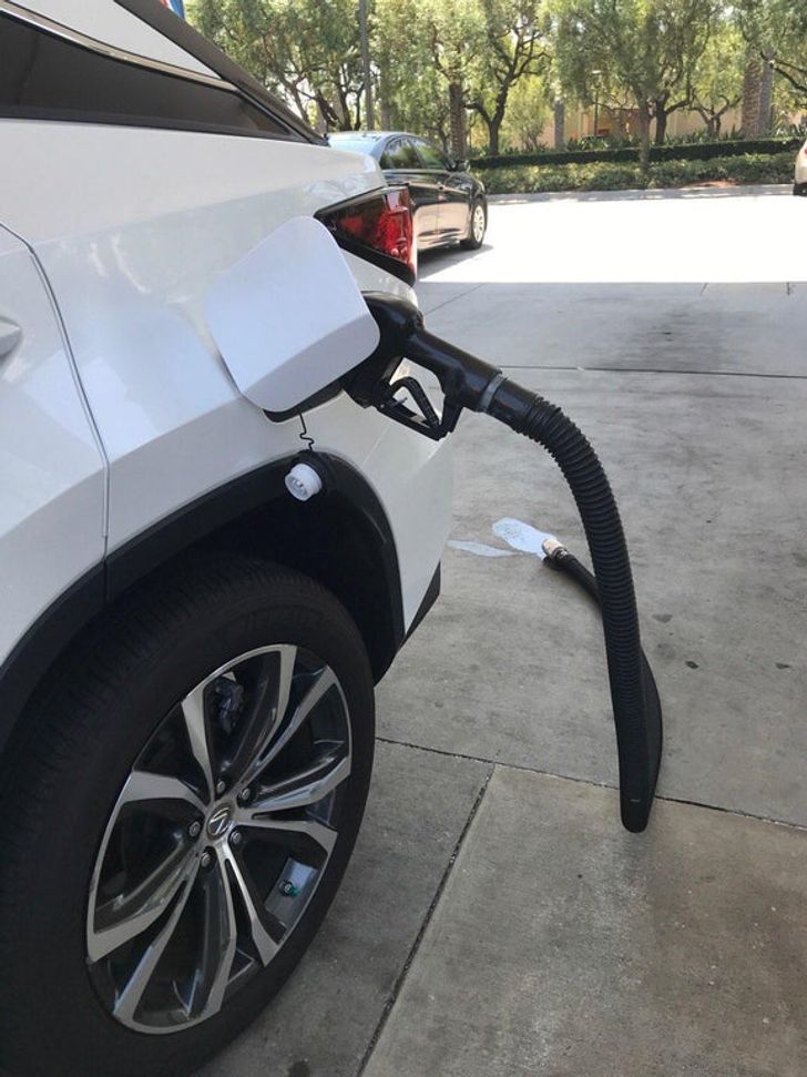 Hölgyeim és uraim, íme édesanyám tankolás után, itthon.