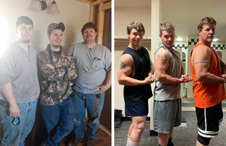 Apa és fiai együtt edzenek! Összesen kb.180 kg-t dolgoztak le.