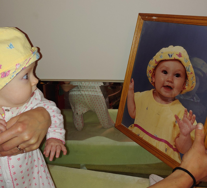 ”A 3 hónapos kislányom, aki az anyukájáról készült képet nézi, pontosan ugyanabban a kalapban”