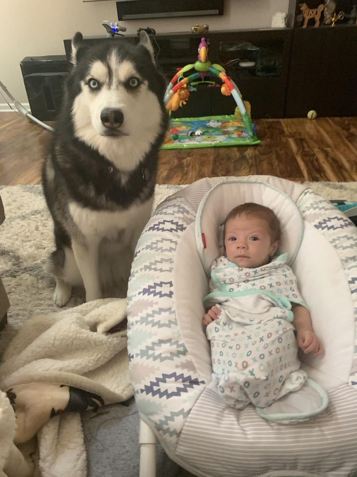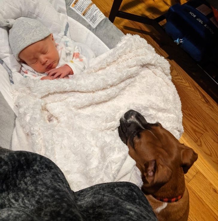 Még szoknia kell a helyzetet, de szinte el sem mozdul a baba mellől!