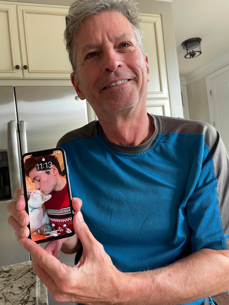 Küldtem neki egy képet rólam és a macskámról.. a háttérképnek állította be.