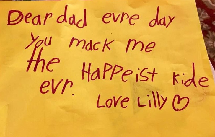 „Kedves apa, nap mint nap a legboldogabb gyerekké teszel. Szeretlek, Lilly”