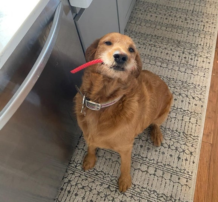 Ha esélyt kap rá, aki szétrágja a cipőidet és bármilyen vezetéket, de ezt a kutyafalatot már négy napja csak cipeli..