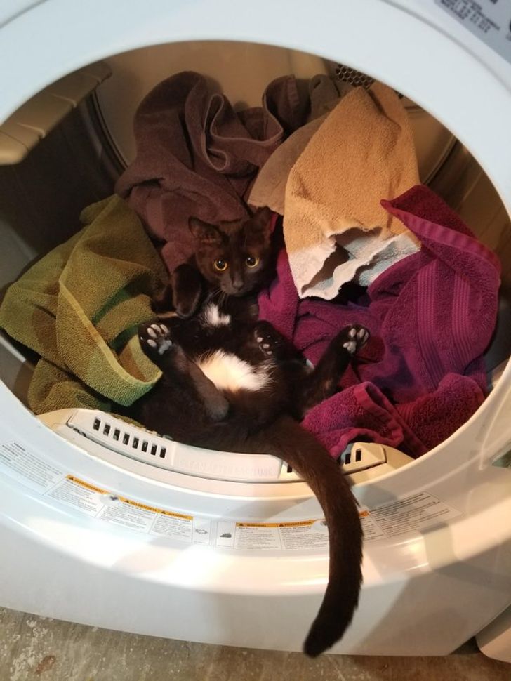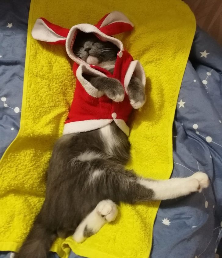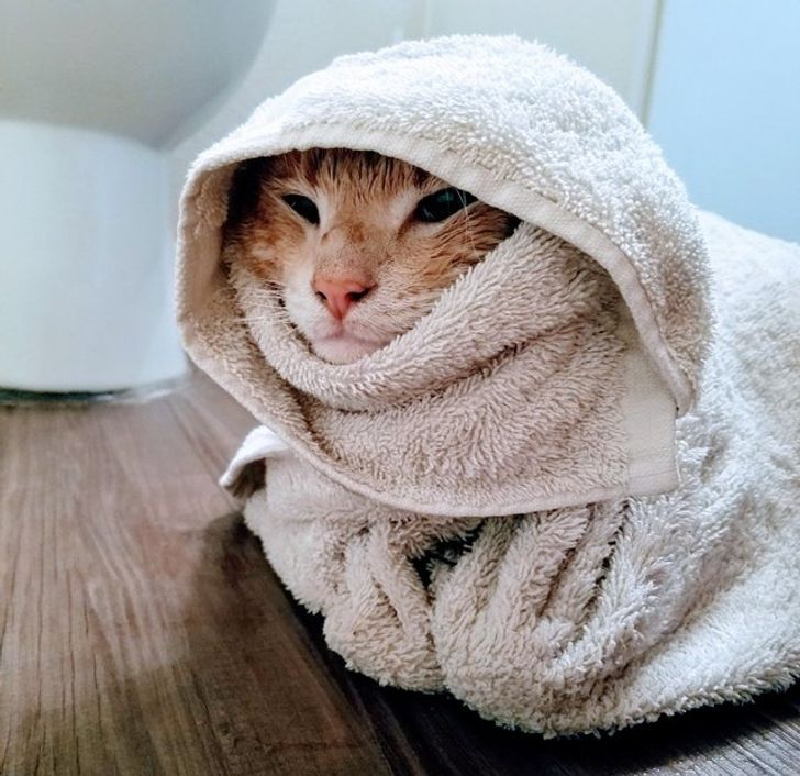 Íme Jack. Fürödni nem szeret, de a puha törülközőben pihenni igen.