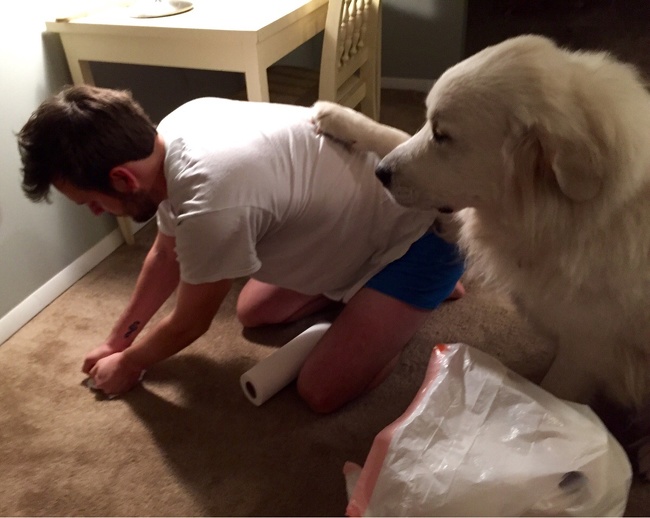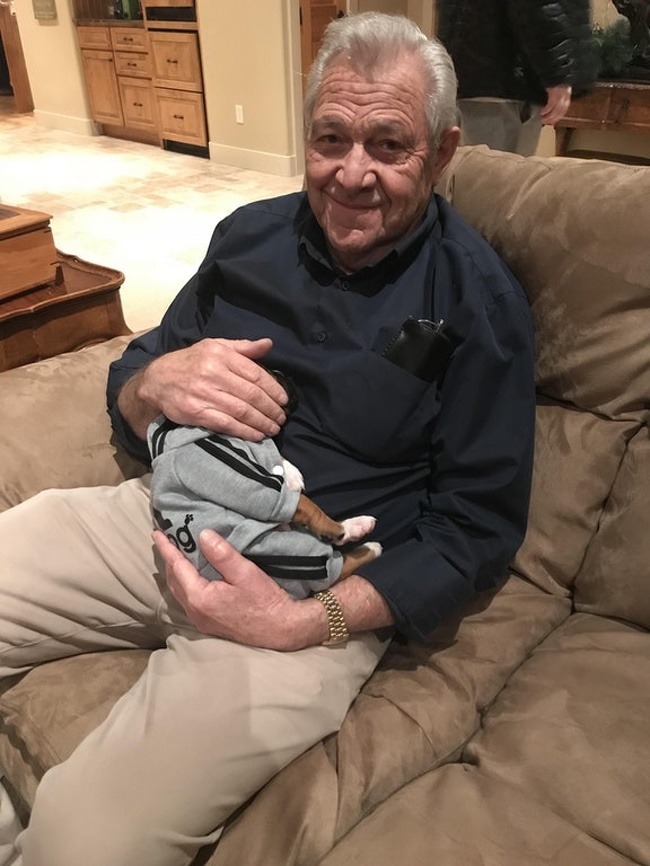 „Nagyapám és kis kedvence Karácsonykor, eltakarta a szemét, hogy a meglepetés az utolsó pillanatig meglepetés maradjon.”