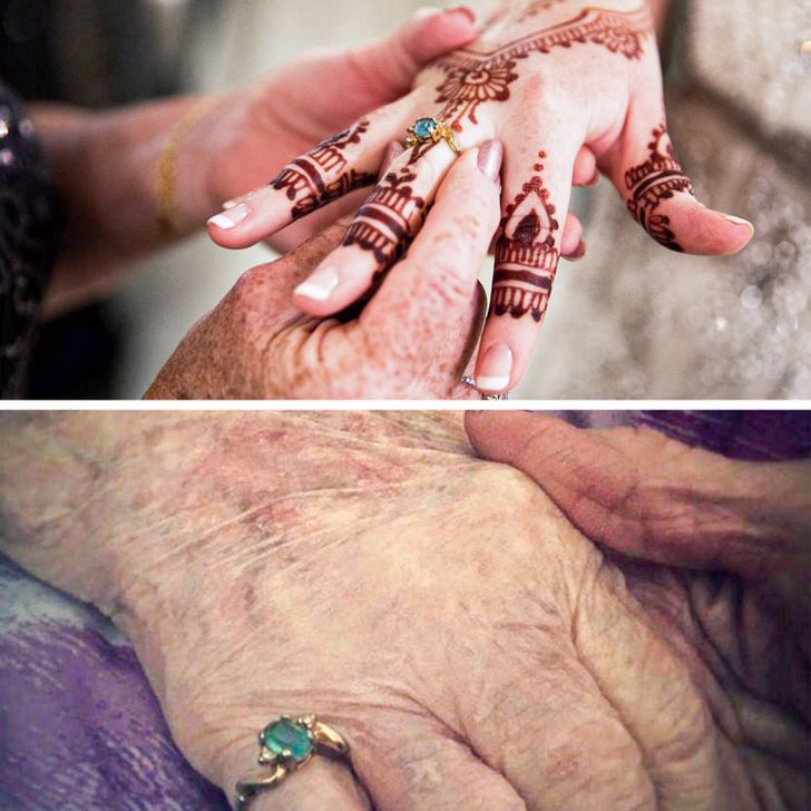 „Amikor 6 éves voltam, a nagymamám adta nekem ezt a kék gyűrűt. Gyakran viselem ezt a gyűrűt az emlékére, és amikor az esküvőm napján viseltem, éreztem, hogy ott van velem.”