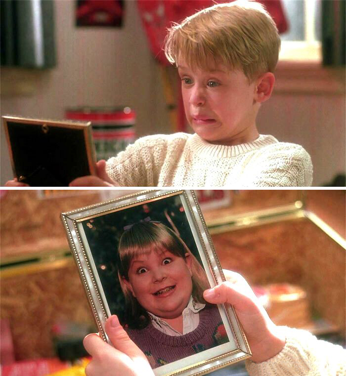 Kevin az első részben talál egy fotót a testvére barátnőjéről. Valójában ő az egyik rendező fia, akit beöltöztettek lánynak, hogy ne ócsáróljanak le egy lányt sem, ezzel megelőzve a film rossz hírének kialakulását.