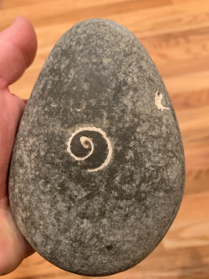 Találtam egy kavicsot, benne egy kagylóhéjjal, ami már lapossá kopott.