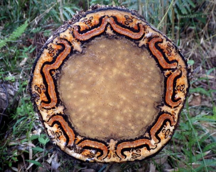 Egyedi minta egy fa belsejében.