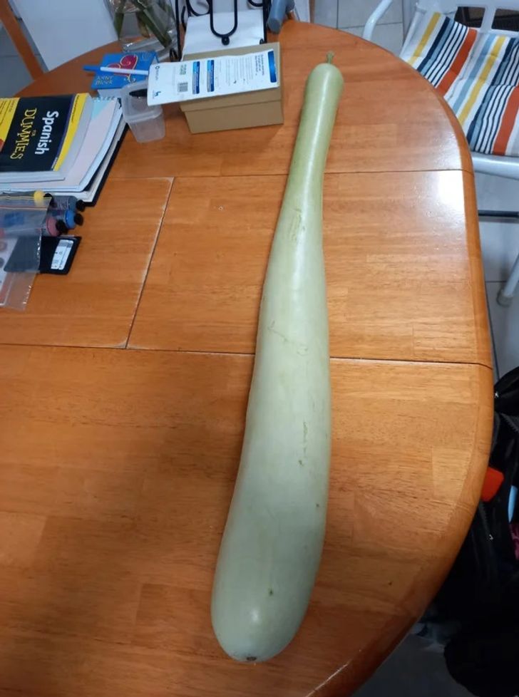 Egy komikusan hosszú sütőtök.