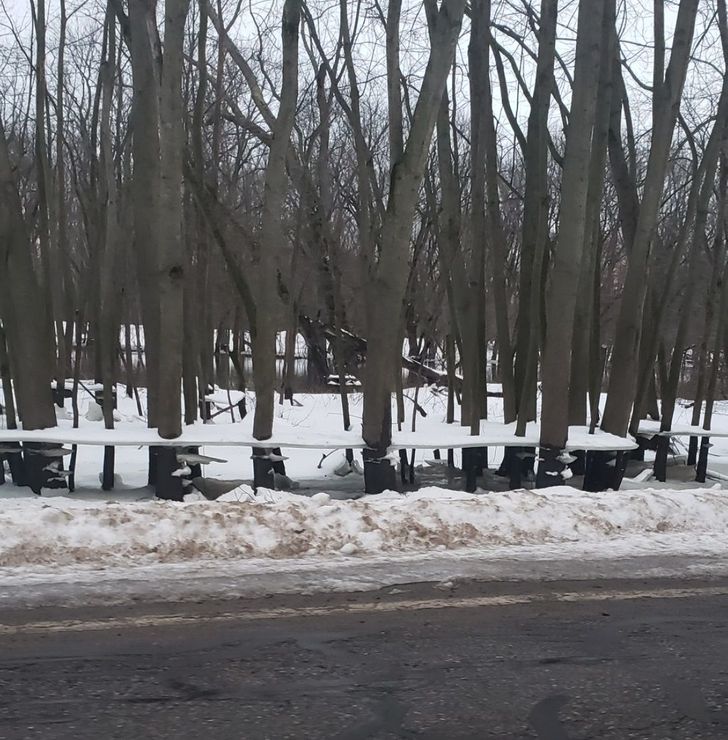 „A közelemben lévő folyó kiömlött, majd megfagyott, és később a víz visszahúzódott. Ezeket a lebegő jégtáblákat a fákon hagyta.”