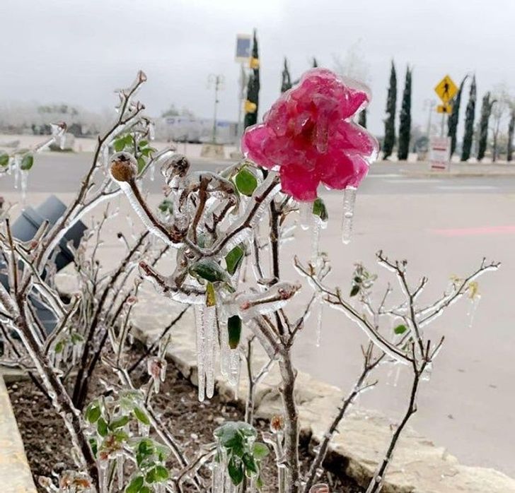 „Fagyasztott virágot találtam Austinban a texasi téli vihar után.”