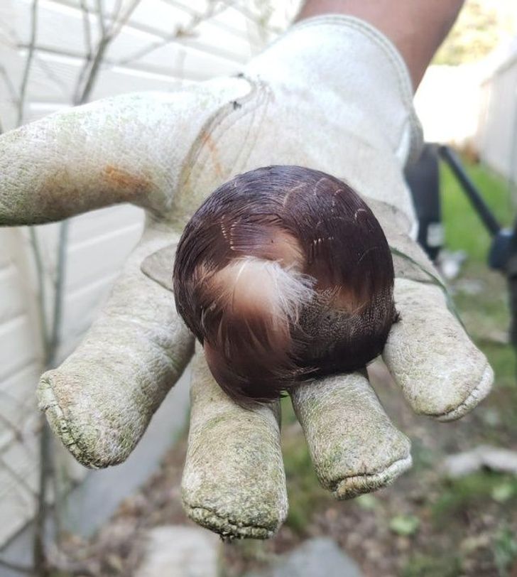 „Megmutattam a feleségemnek (ornitológus és 15 év feletti állatgondozó). Szerinte valószínű, hogy légy tojás van a belsejében, és a tollak valószínűleg egy kacsából származnak. De még soha nem látott ekkorát..”
