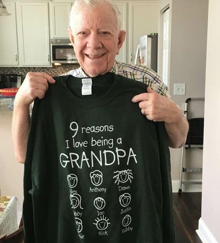 „A nagypapám Alzheimer-kórban szenved, és nem mindig emlékszik a neveinkre, de most kapott új pólót.”