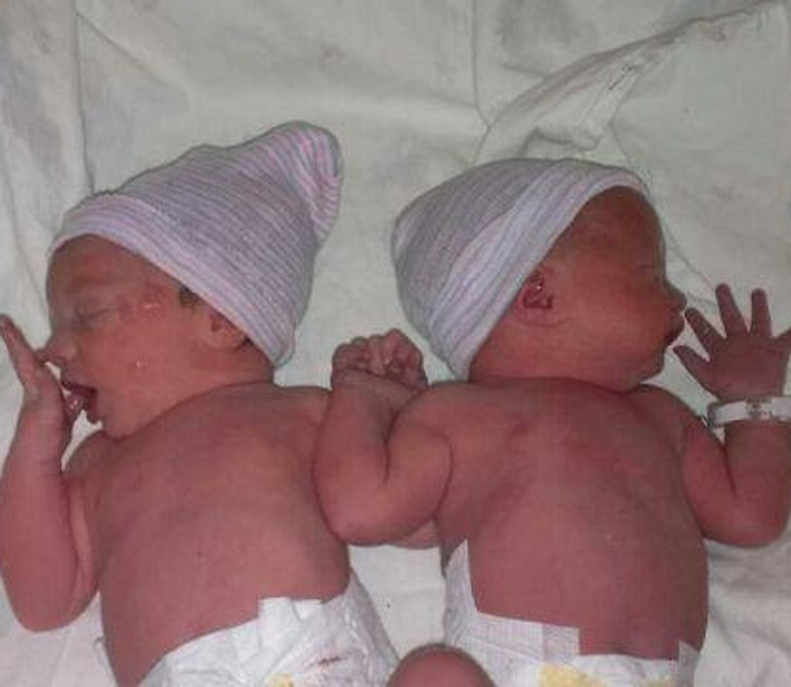 Ikrek, akik születés után kézen fogva alszanak.