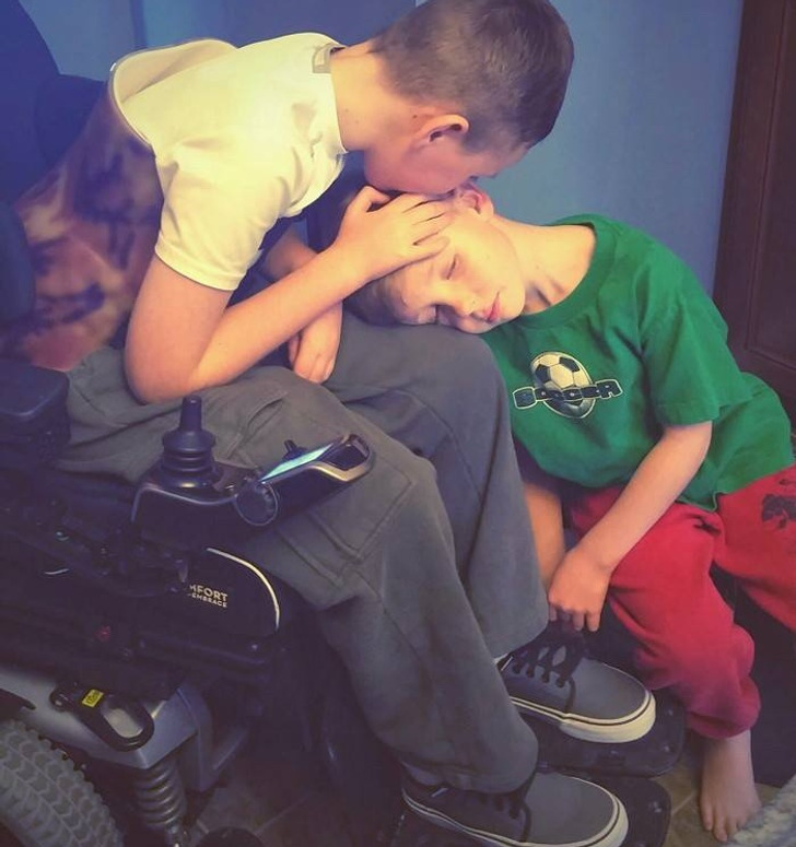 „A legidősebbem nem tud beszélni, mióta 2008-ban agysérülést szenvedett, de ez nem akadályozza meg abban, hogy megvigasztalja az öccsét, amikor nem érzi jól magát.”