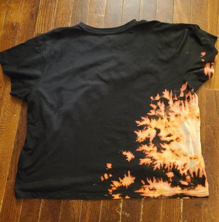 A kutyám kiborította a fehérítőt, ami a szennyesek mellett volt, és ez történt az egyik pólómmal: