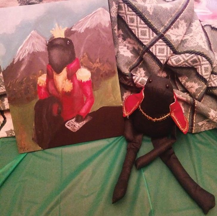 „A 15 éves lányom megvette ezt a békát egy takarékossági boltban, majd méltóságteljesen lefestette.”