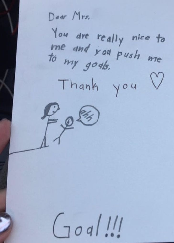 „Kedves Mrs. Ön nagyon kedves hozzám, és a céljaim elérésére ösztönöz. Köszönöm.”