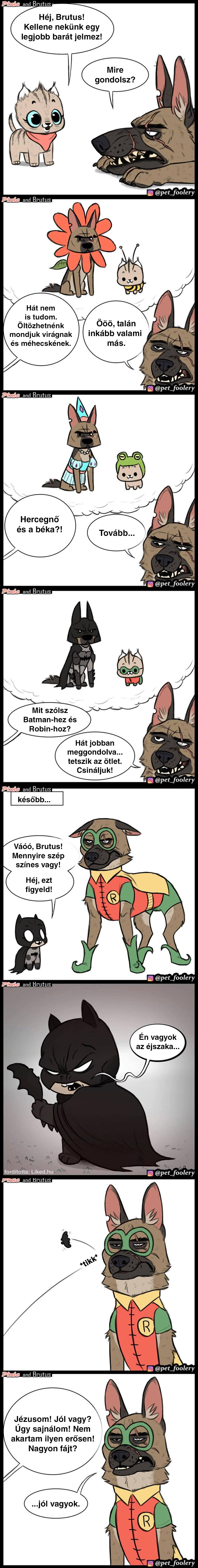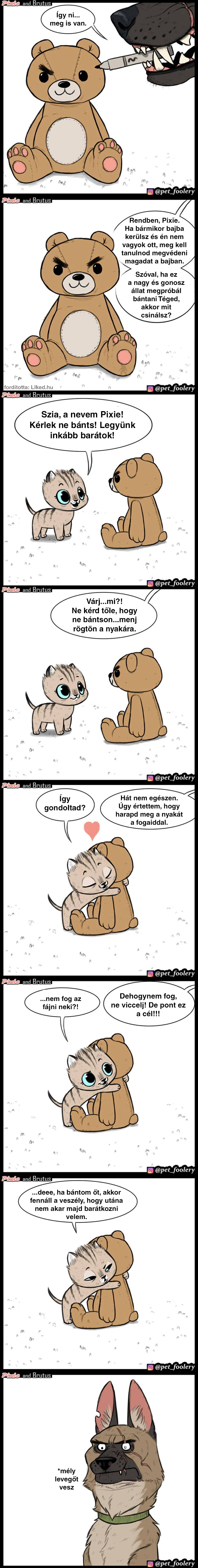 Egy művész képregényeket rajzol egy édes kiscica és egy harcias juhászkutya elképesztő barátságáról