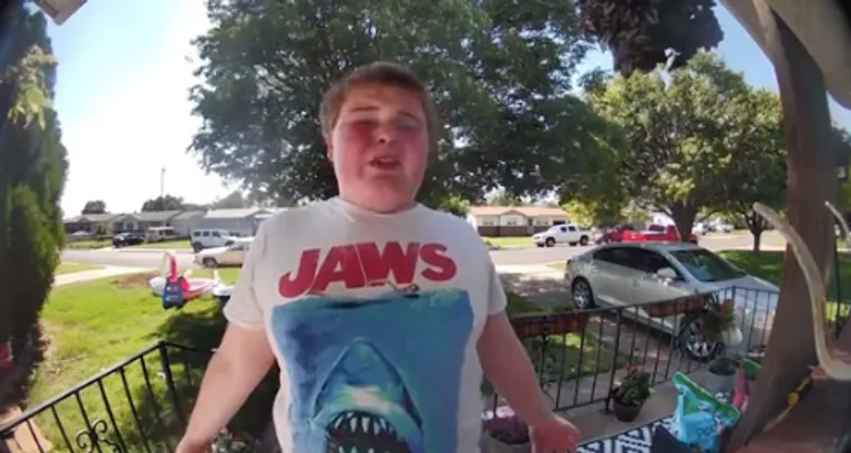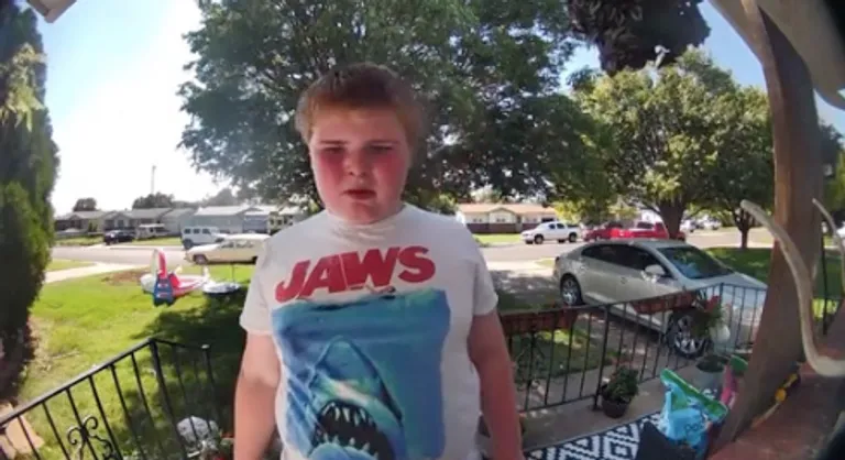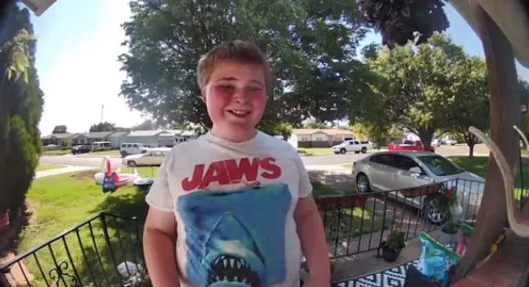 A férfi meghallja a csengőt, és egy kétségbeesett fiút lát a verandáján, aki azt kérdezi: „Van gyereked?”