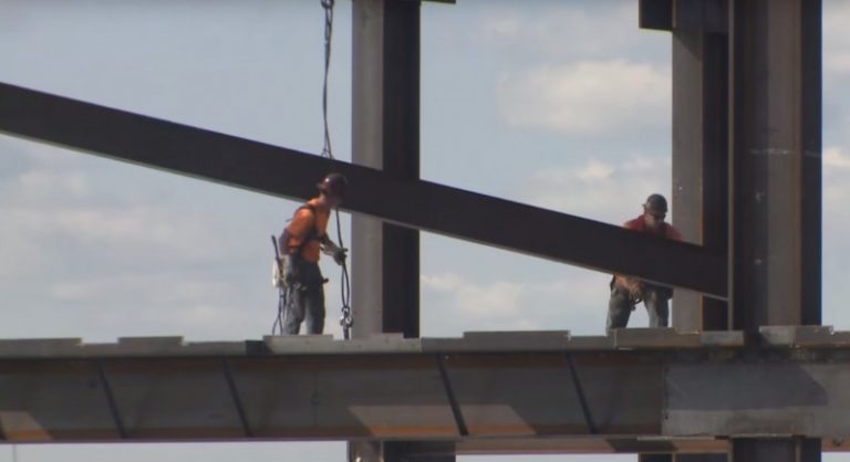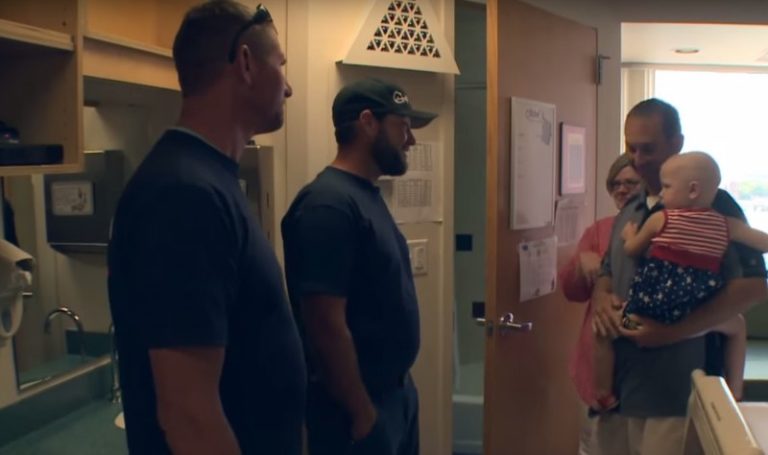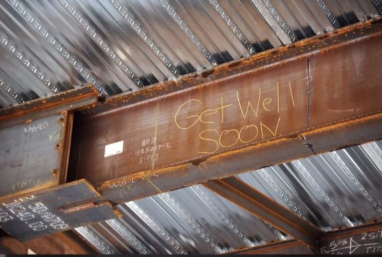 Ahelyett, hogy integettek volna, mint általában, Trevis Barnes és Greg Combs, két építőmunkás egy acélgerendára mutatott, amelyre a következő üzenetet írták: „Jobbulást”.