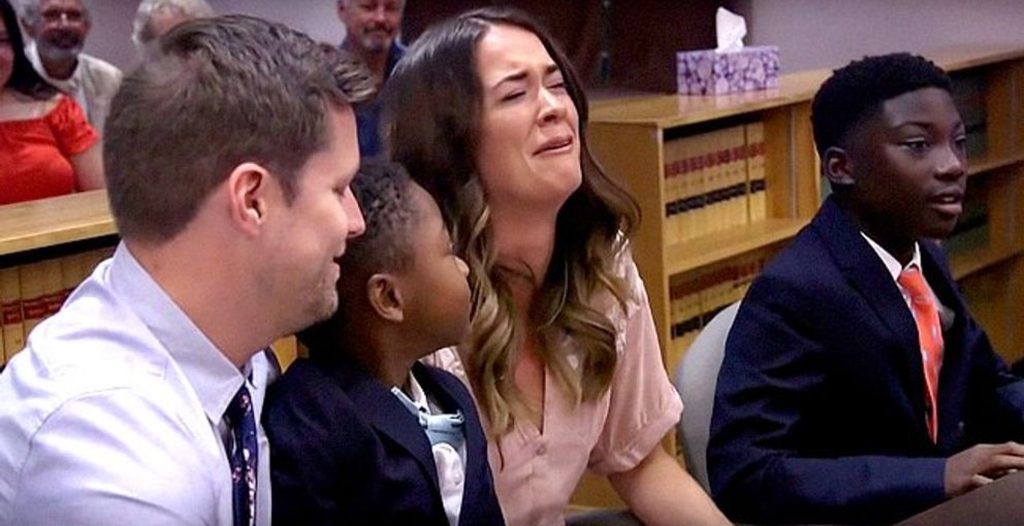A videón látható, ahogy a négytagú család egy bíró előtt ül, aki kikérdezte őket. „Támogatjátok az örökbefogadást?” – kérdezte a bíró az idősebb testvért, Dayshawnt, mire az boldogan igennel válaszolt.
